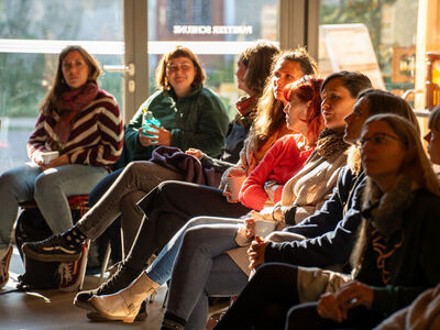 Auch die internen Workshops boten viel Raum zum Ausprobieren: von Kinderyoga über kreative Bewegungsarbeit und den Einsatz der Pedalo-Kisten bis hin zu einer Einführung ins Asyl- und Aufenthaltsrecht. Für neue Kolleg:innen stand außerdem das Programm Eigenständig werden im Mittelpunkt.