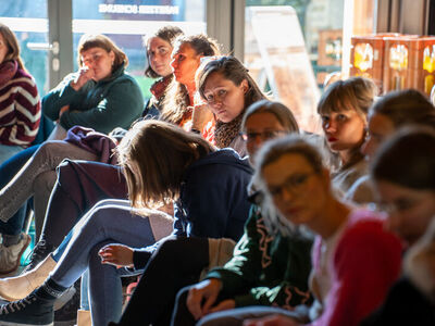Auch die internen Workshops boten viel Raum zum Ausprobieren: von Kinderyoga über kreative Bewegungsarbeit und den Einsatz der Pedalo-Kisten bis hin zu einer Einführung ins Asyl- und Aufenthaltsrecht. Für neue Kolleg:innen stand außerdem das Programm Eigenständig werden im Mittelpunkt.